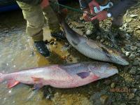 И сразу взвешивать, взвешивать на радостях. Приятно посмотреть, как взрослые мужики резвятся как дети, при поимке более крупных экземпляров. Обсуждают, кричат, раззадоренные единственной хорошей поклевкой за сегодняшний день. «Напиши, что я поймал!» «Хорошо, напишу.» Пишу...