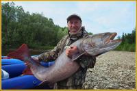 ...Всего за время сплава нами было поймано более 70 тайменей, из них один за 30-ку, три за 20 кг., и с десяток от 10 кг. Так же было много сходов по причине слабых карабинов (покупайте только Овнеры) и обрывов шнура. Это путешествие завершилось, ну а через три дня снова в путь на реку Мая, одну из самых красивых рек Дальнего Востока!!!