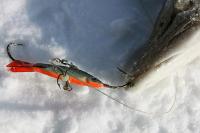Лунки сам долбил и обустраивал. Поводки зимой, как правило, не ставят. Видно мешают игре приманки. Шнур особенного плетения, там внутри еще продольный пучок волокон есть. Сколько на него ловлю - обрывов не было ни разу. Леску рвало возле рук. После нового года хуже немного клевать будет, зато сейчас есть шанс зацепить большую рыбу, ту, которая в лунку утащить может.