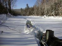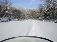 Чуть больше десятка км и поворот на нужный волок. Ещё несколько и мне надо повернуть и выйти на реку по пропиленному бураннику. Там разгрузиться и двигать на базу. Поворот на реку. Буранник на реку протоптан, но снегоходы вернулись назад, и ушли волоком. Или охотники топтанули след, зная, что буду один и сильно гружёный или на речке задница. Выезжаю на речку. Разгружаюсь в заданном месте. Несколько км по реке вижу наледь, где челы провели несколько часов, развернулись и пошли простым путём.