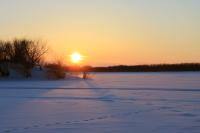 Незнакомое все. Разбери попробуй, где тут щука прячется. Придется побегать. Интуитивно начинаем выбирать себе места для ловли. Вот здесь метр подо льдом, вот здесь пол метра... Садимся, там видно будет. В дали появились еще несколько человек, явно направляющихся в нашу сторону. Значит не одни мы такие, много нас таких. Слова подходящего на найду, может - рыбаков? Наверное.