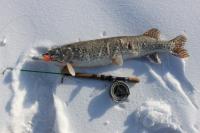 Буду краток. Не хотелось сидеть на своих проверенных лунках, и мы направились на поиски новых ловчих мест. Вовсе не было желания что-либо кому-то доказывать, напротив, хотелось пробить одну единственную майну, в выбранной по интуиции точке, и расслабиться. Что и сделали. Но не долго пришлось медитировать. Резкий хват неплохой щуки заставил даже как-то немного напрячься.