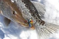 Хвосты сделаны из кистей магазинных. Насколько помню - свиная щетина. Приклеить можно на эпоксидный клей или суперклей и пролачить. Про цветность. Особой разницы не заметил, ну вот может быть белые приманки лучше работали, а ярко-красные хуже ( не значительно). Скорее всего, что после обеда рыба наелась и как-то успокоилась. Не было уже той агрессии, с которой нападала с утра. Тыкнет, щипнет, выплюнет, сойдет прямо в лунке... То и дело слышишь: «Лови ее, лови!». Сходов сегодня было около десятка и пустых поклевок столько же.