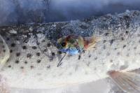 Много можно говорить об этой приманке. Есть и минусы. Вот штатный тройник совсем никуда не годится. При форсировании рыбы он ломается. Хорошо, если она села еще и на большой крючок. Ты же этого не видишь и тянешь так, чтобы поскорее вытащить зубастую из лунки.