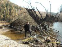 Немалое количество мушек в кармане и единственный крючок на приманке с повернутым вверх жалом давали мне неоспоримое преимущество перед спиннингистами. Через несколько забросов на берегу лежал красавец ленок около двух с половиной килограмм. Тут же полетели воблеры, но при зацепе в одном и том же месте, народ стал перемещаться в сторону удобную для заброса, а не в сторону рыбы. Я, напротив, стал облавливать закоряженные места. Лежащие на дне ветки иногда очень мешали проводке, но это не останавливало.