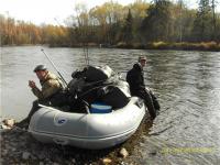 Оптимальное время для сплава по Хуту,как всегда зависит от поставленных задач.Если отдохнуть и порыбачить,то на мой взгляд-это июнь,тем более,при благоприятном раскладе, можно удачно попасть на симу.Осенью красиво и крупные гольцы в верховьях рек,но что на Тумнине,что на Коппи,в это время местные сплавляются на резинках заготавливая хариуса.По поводу вопроса о сплаве на легких лодках-нет проблем,скорость течения по средней воде-приличная,грести нигде особо не придется.Я доходил на веслах, до пос.Датта на побережье моря.В плане ловли нахлыстом,река практически идеальна,в среднюю воду,достаточно мест для ловли, в том числе и больших галечных кос.Из удочек,достаточно иметь одноручник 5-7 кл.с плавающим шнуром и набором сменых подлесков, и легкий двуручник 8-9 кл.на крупных гольцов,симу и сахалинского тайменя.Мухи используются стандартные,для этих видов рыб.Местная рыбы, временами не равнодушна к крупным мухам,так как на реках побережья,обычны гигантские ручейники и веснянки,достигающие порой в длину 6 см.