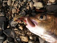 Но все- же было приятно, что мы нашли выход из положения. Дальнейшая рыбалка на мушки и стримеры с шумовыми вставками в виде бронзовых шариков принесла нам еще несколько неплохих ленков. При ловле на такие приманки желательно проводить их так, чтобы они касались дна, либо нужно делать короткие рывки шнуром или кончиком удилища.