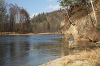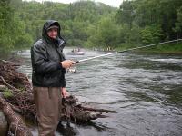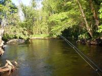 При наличии определенной техники и достойного удилища с соответствующим шнуром, заброс тяжелой мухи метров на двадцать пять не составит особого труда. Но, что делать тому, у кого нет двуручного удилища и опыта работы с намокшей мухой? Все просто. Сломав на рыбалке одноручник девятого класса, не задумываясь, переставил мушку на удочку пятого класса и продолжил. Конечно, ни про какой «спей» заброс речи не могло идти, но при махе через голову, достаточно было отвести руку немного больше назад (или вперед), дать коснуться мухе воды и с плавным ускорением и тягой левой руки метнуть мушку к намеченной точке приземления. Конечно, все должно быть в меру. Не стоит слишком перегружать удилище, особенно когда оно у тебя на рыбалке одно. Течение так же оказывает вам неоспоримую услугу. Зачем лишний раз шлепать шнуром по воде, если достаточно послать мушку метров на пять-десять выше и спокойно сплавить до цели. Можно и подойти к рыбе по берегу, но на больших реках при ловле с основной струи без хорошего мощного удилища, все же, не обойтись.