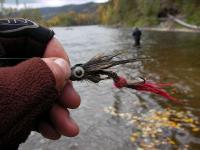 Можно использовать муховоблеров, но в большинстве случаев нет возможности зайти в воду для выбора подходящей позиции. Вот на такие моменты и припасено в коробке несколько изготовленных на легком джиге или подгруженных свинцом стримеров, которые позволяют облавливать более глубокие участки реки.